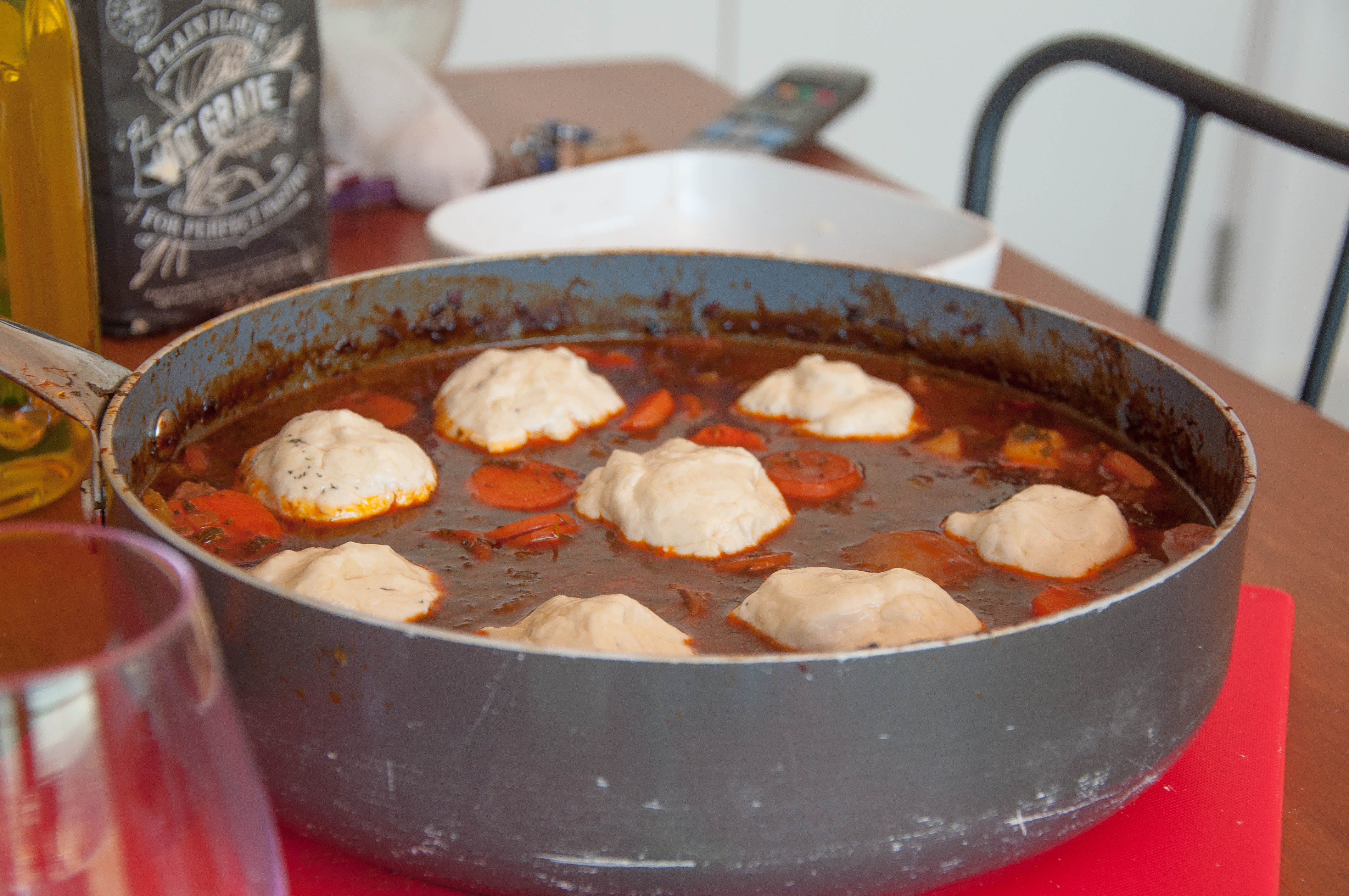 - With floured hands, roll spoonfuls of the dough into small balls – don’t make them too big as they will expand in the stew.
