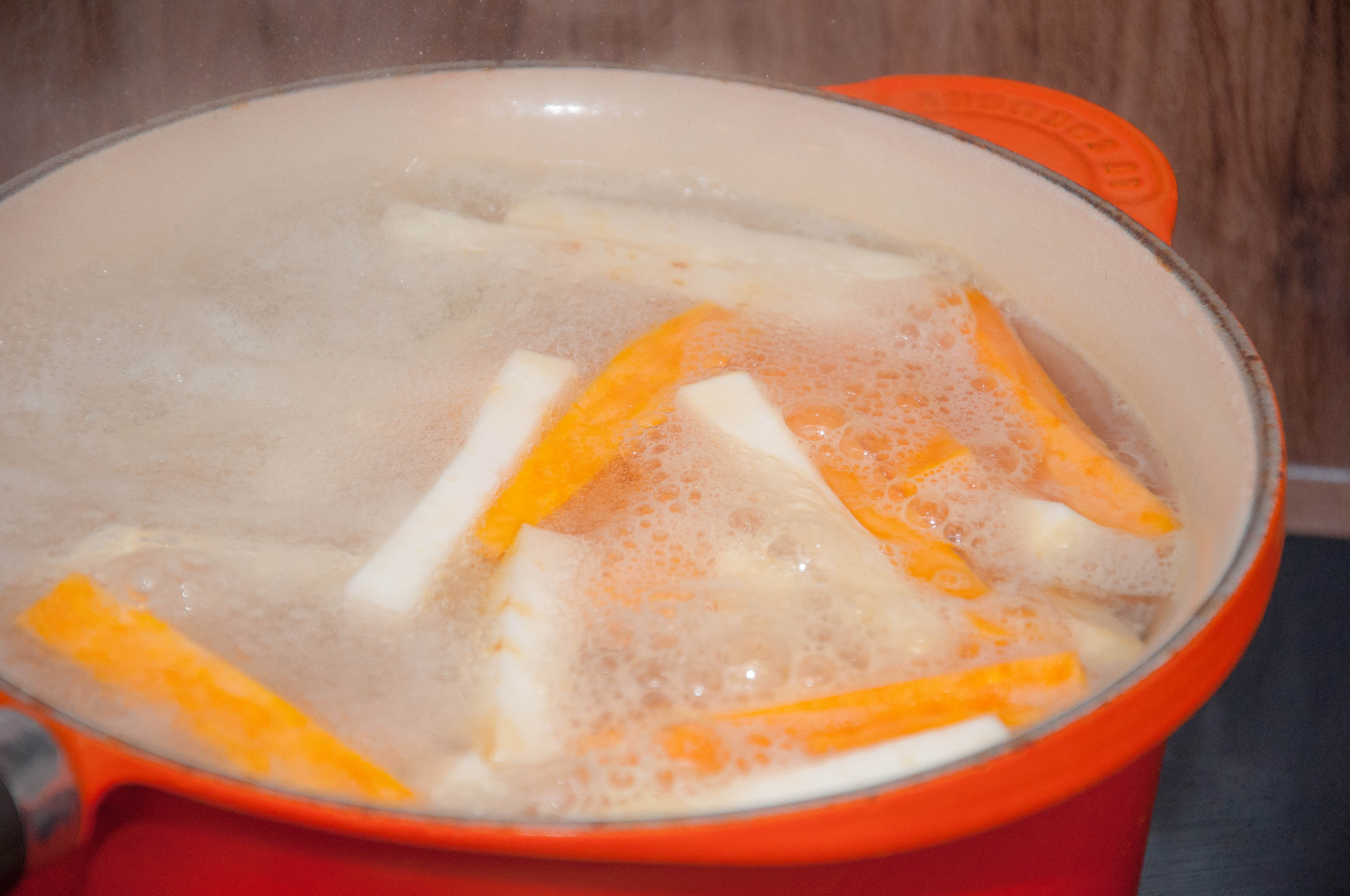 - Put the first 8 eggs into a pan of cold water and bring to the boil. Boil for 3 to 4 minutes, then transfer to a bowl of cold water. Once cooled, carefully peel them.